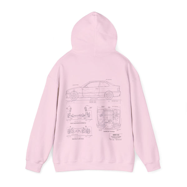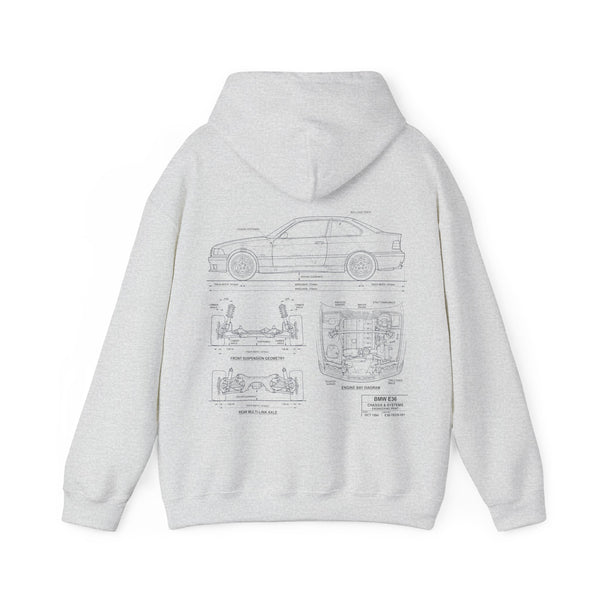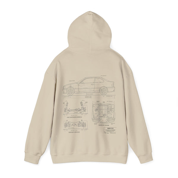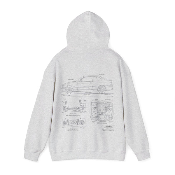 This cozy hoodie channels late-night garage sessions and spirited drives down backroads. Soft, medium-heavy fleece wraps you in warmth while the subtle left-chest emblem keeps the front low-key. Flip around and the back tells a story — layered graphic elements, technical sketches, and bold BMW E36 lettering that nod to car culture and mechanical craft. It sits comfortably over a tee, keeps your hands warm in the kangaroo pocket, and feels lived-in from the first wear. Whether you’re tuning in the driveway or meeting friends at a meet, it speaks to people who live for the grind, the build, and the quiet satisfaction of a job